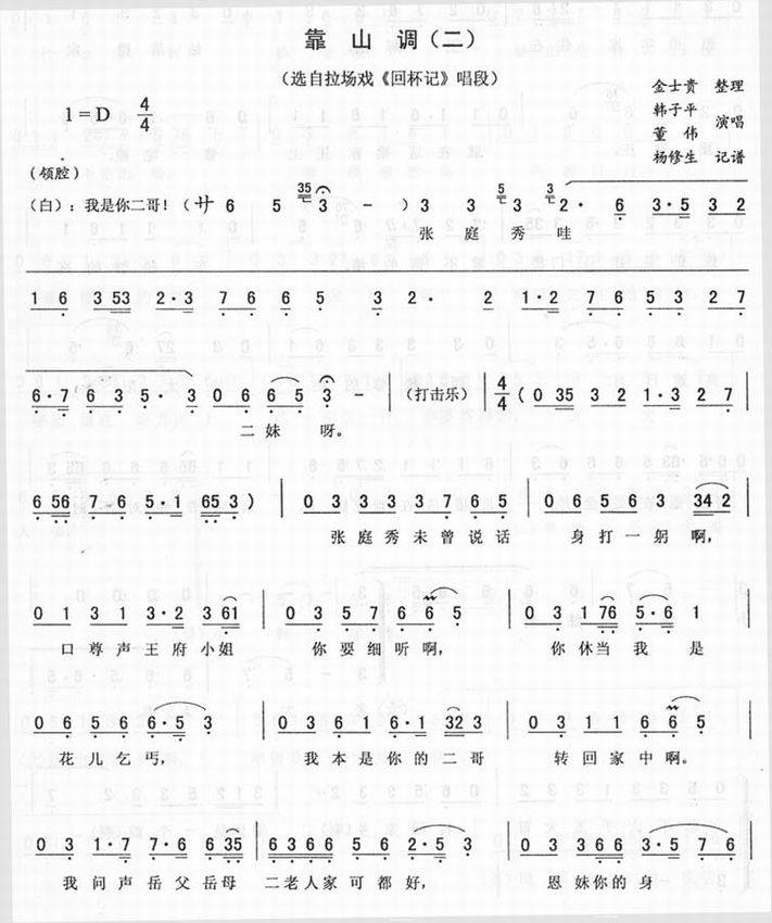 靠山调(二)_<回杯记>二人转简谱 二人转乐谱 二人转曲谱 东北二人转
