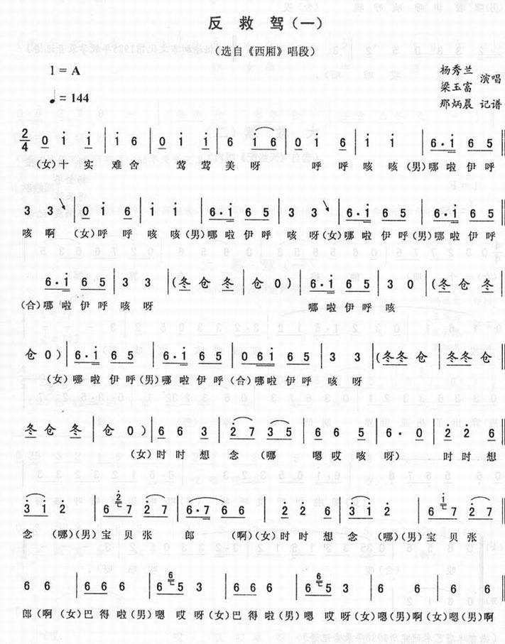 反救驾(一)_<西厢>二人转简谱 二人转乐谱 二人转曲谱 东北二人转
