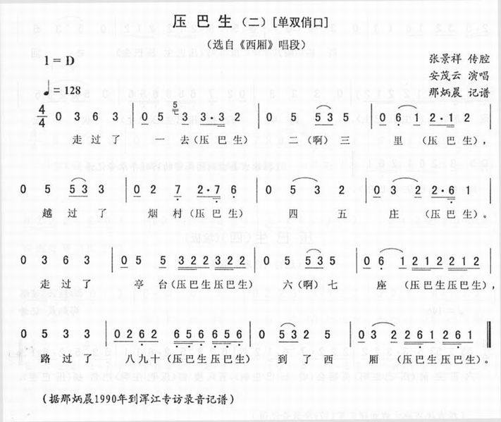 压巴生(二-单双俏口)_<西厢>二人转简谱