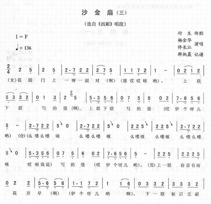 沙金扇(三)_<西厢>二人转简谱