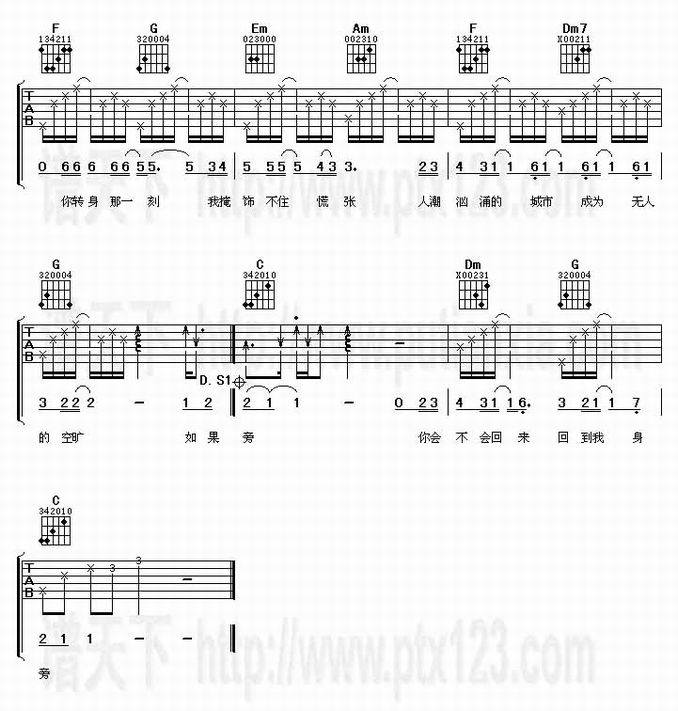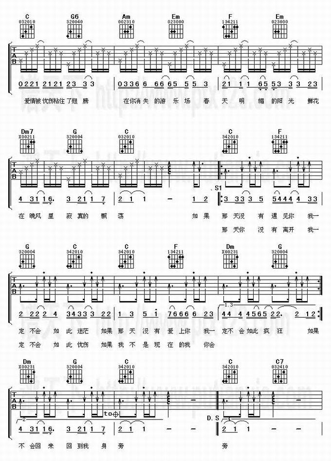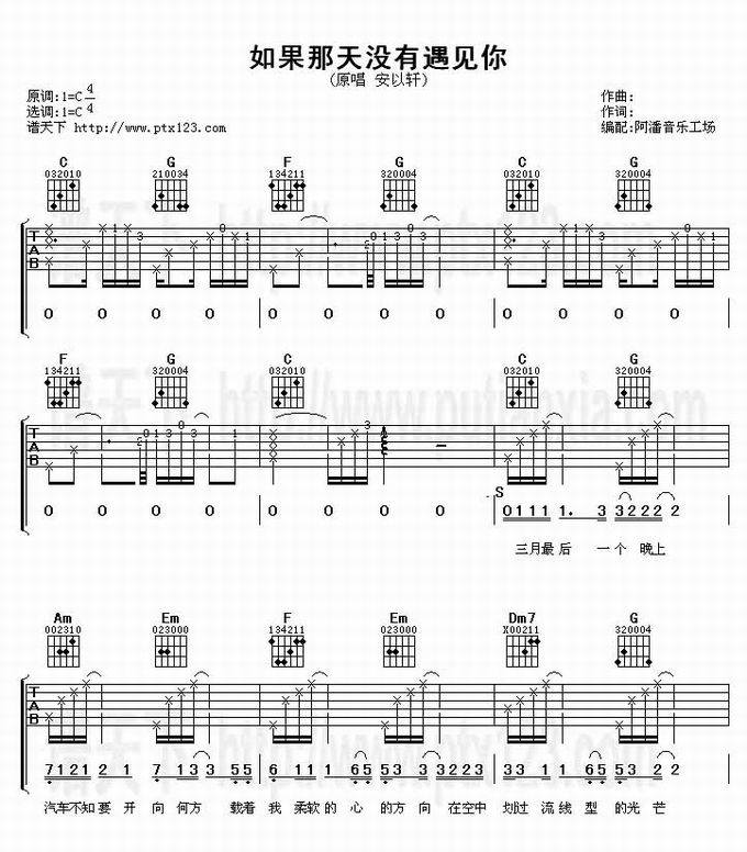 如果那天没有遇见你-安以轩(吉他谱 吉他曲谱 吉他六线谱 吉他歌谱 吉它谱 影视吉他谱)