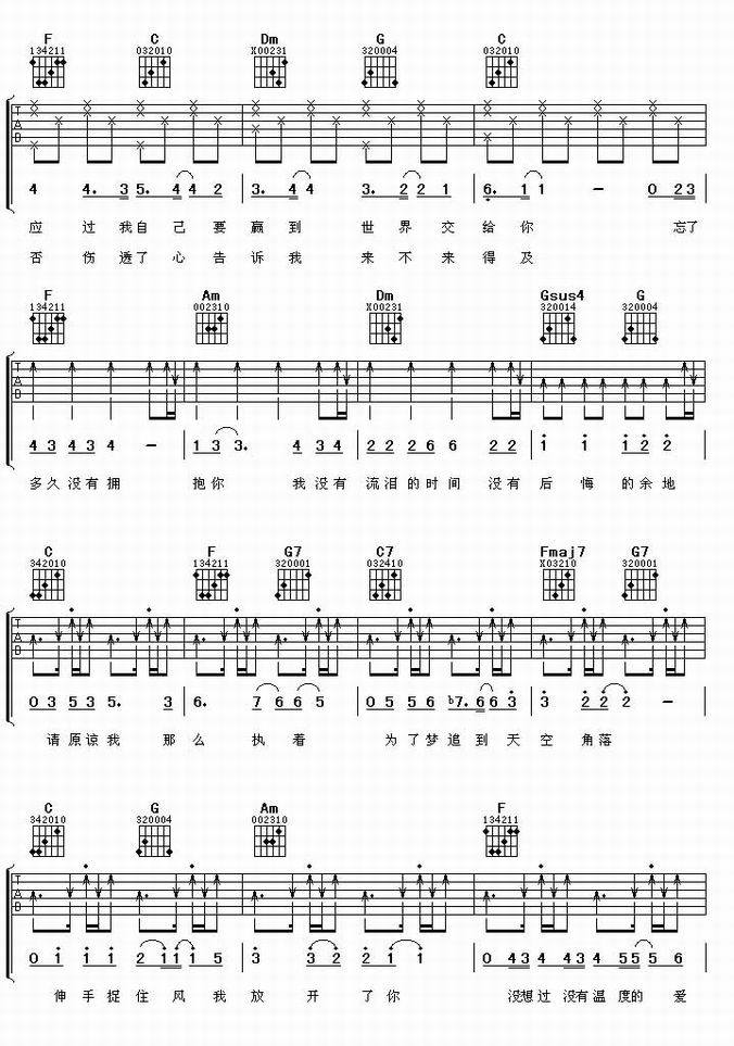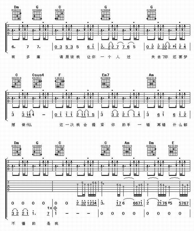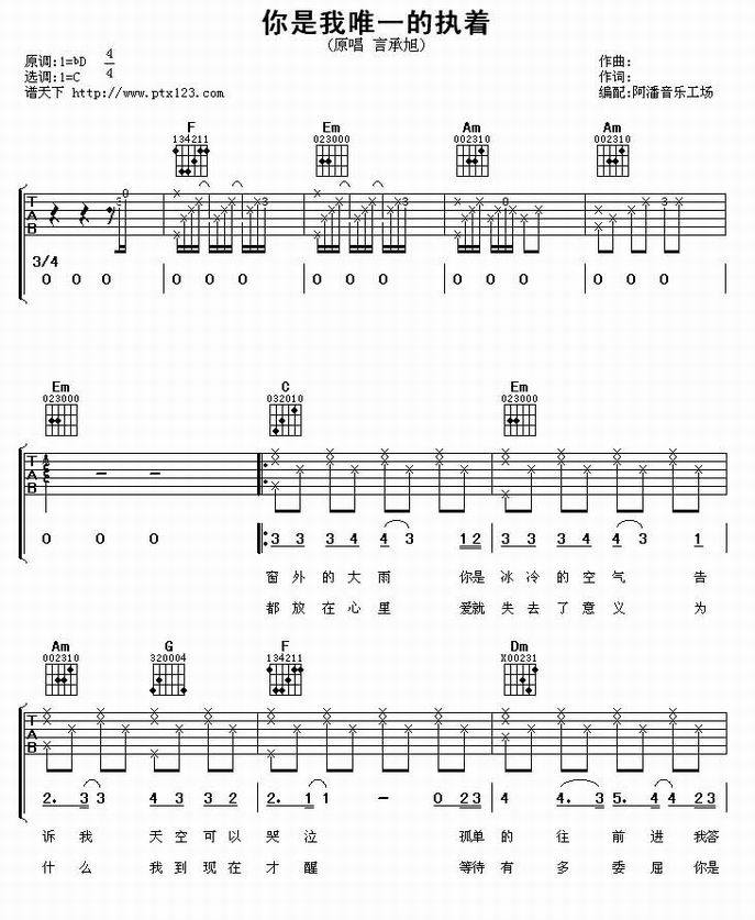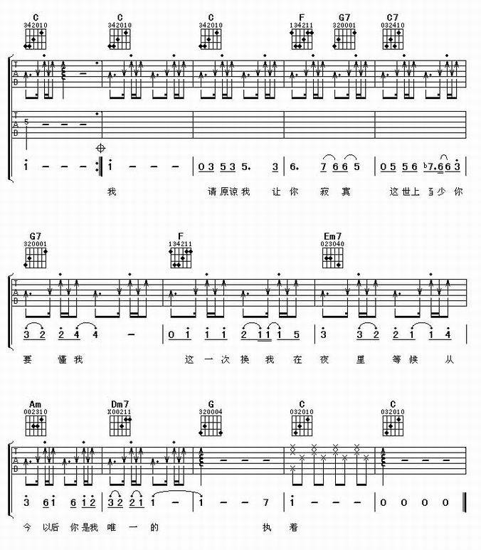 你是我唯一的执着-言承旭(吉他谱 吉他曲谱 吉他六线谱 吉他歌谱 吉它谱 影视吉他谱)