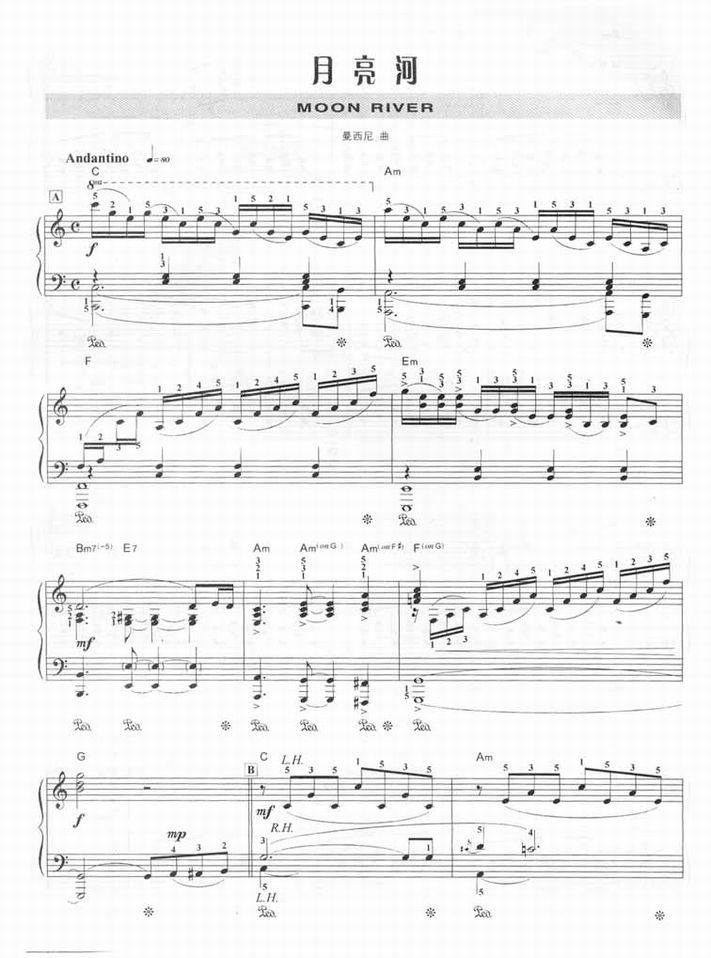 月亮河(MOON RIVER)-理查德·克莱德曼(钢琴谱 钢琴五线谱 流行钢琴谱 钢琴伴奏谱 钢琴弹唱谱 钢琴谱下载)