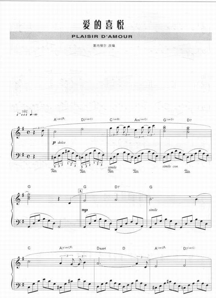 爱的喜悦(PLAISIR D’AMOUR)-理查德·克莱德曼(钢琴谱 钢琴五线谱 流行钢琴谱 钢琴伴奏谱 钢琴弹唱谱 钢琴谱下载)