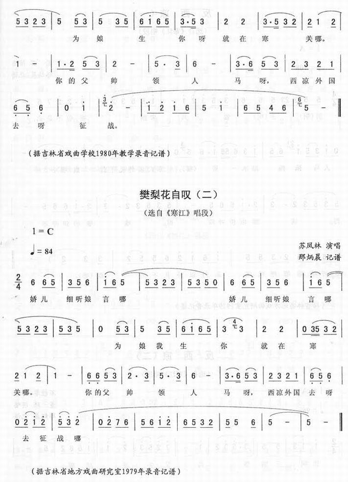 樊梨花自叹_<寒江唱段>二人转简谱 二人转乐谱 二人转曲谱 东北二人转