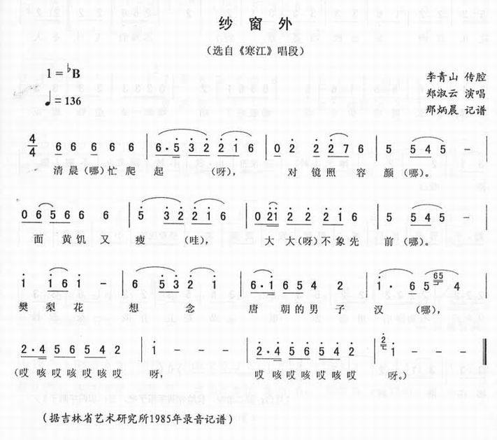 纱窗外_<寒江唱段>二人转简谱 二人转乐谱 二人转曲谱 东北二人转