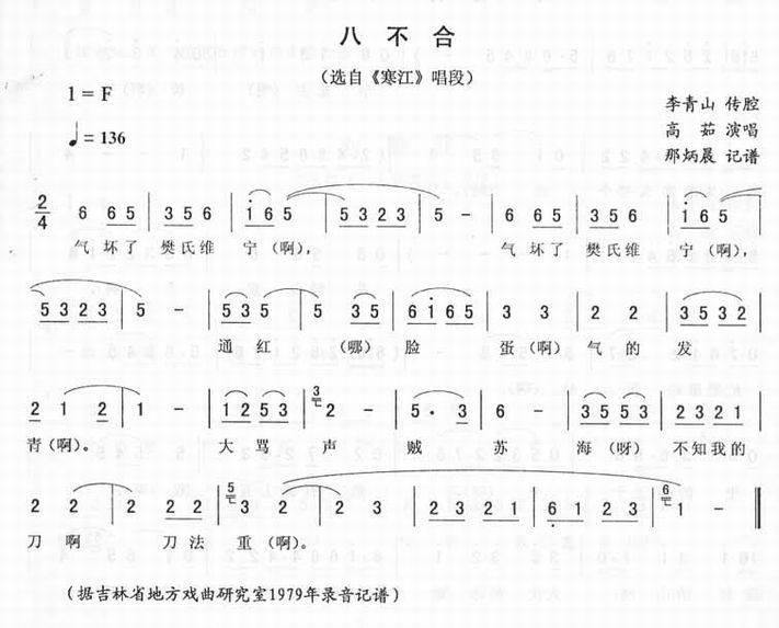 八不合_<寒江唱段>二人转简谱 二人转乐谱 二人转曲谱 东北二人转