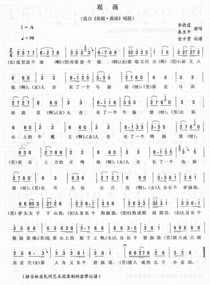 观画_<西厢·观画>二人转简谱 二人转乐谱 二人转曲谱 东北二人转
