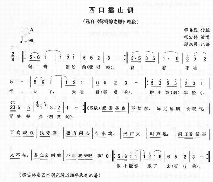 >> 西口靠山调_<鸳鸯嫁老雕唱段>二人转简谱