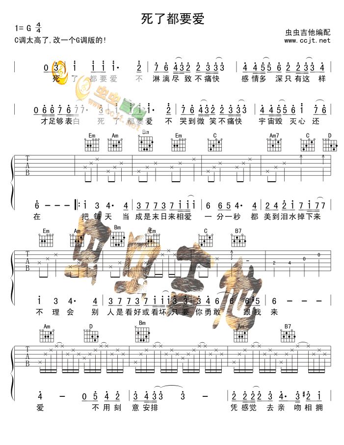 死了都要爱-信乐团(吉他谱 吉他曲谱 吉他六线谱 吉他歌谱 吉它谱 影视吉他谱)