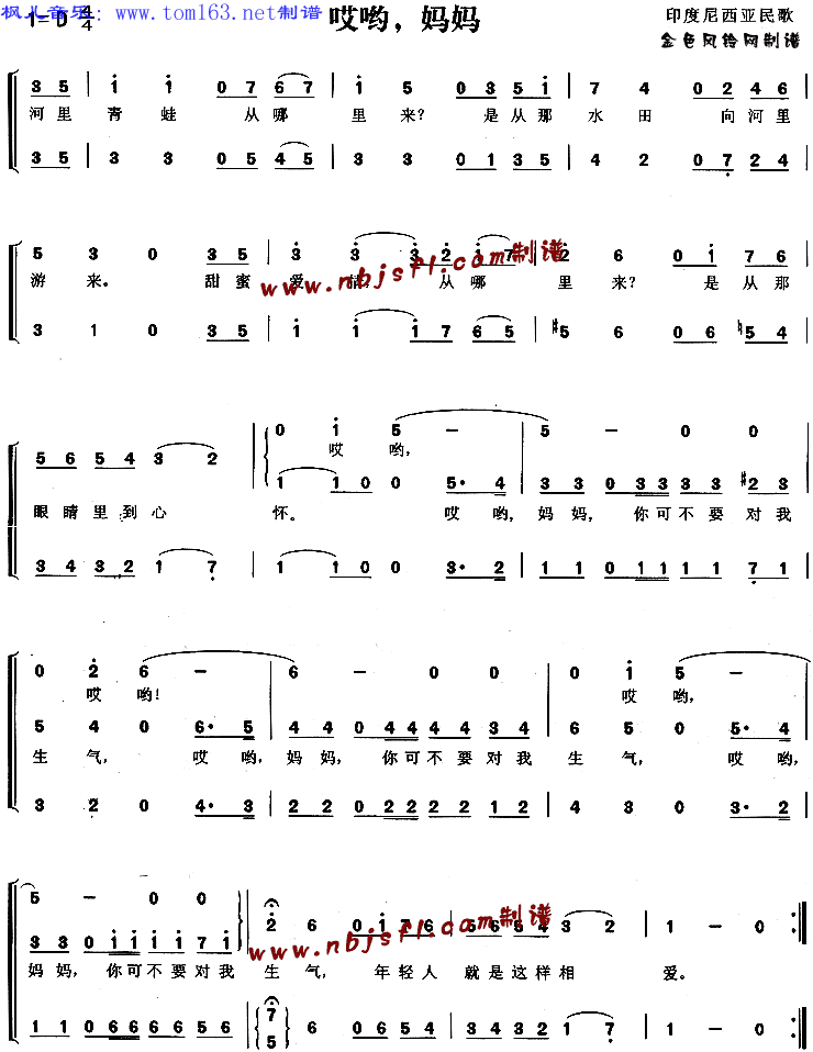 哎哟妈妈-印度尼西亚民歌(简谱 歌谱 歌曲简谱 合唱简谱 影视简谱)