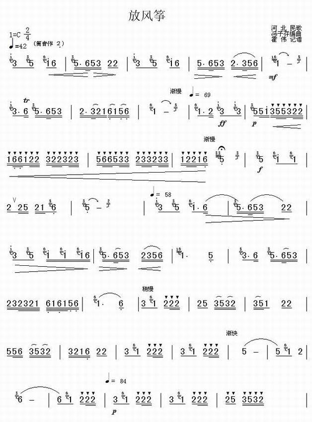放风筝-冯子存_河北民歌(笛子曲谱 笛子曲 笛子谱 笛子独奏 竹笛曲谱 笛子音乐 竹笛曲 竹笛音乐 中国竹笛)
