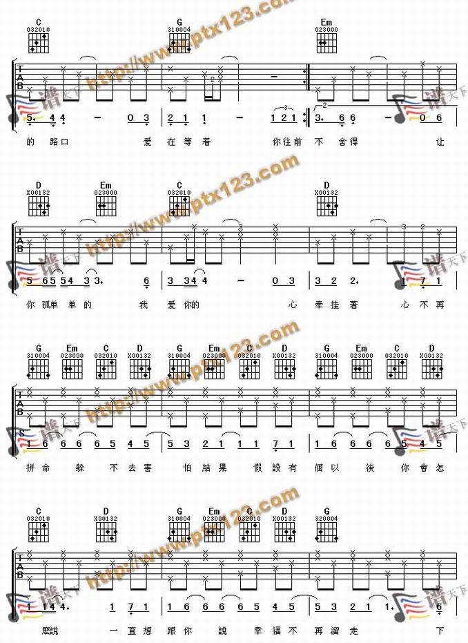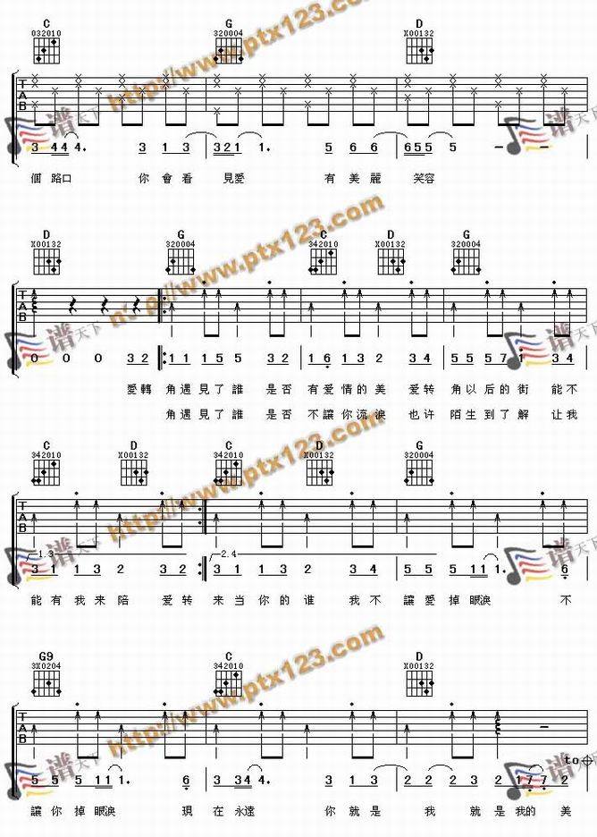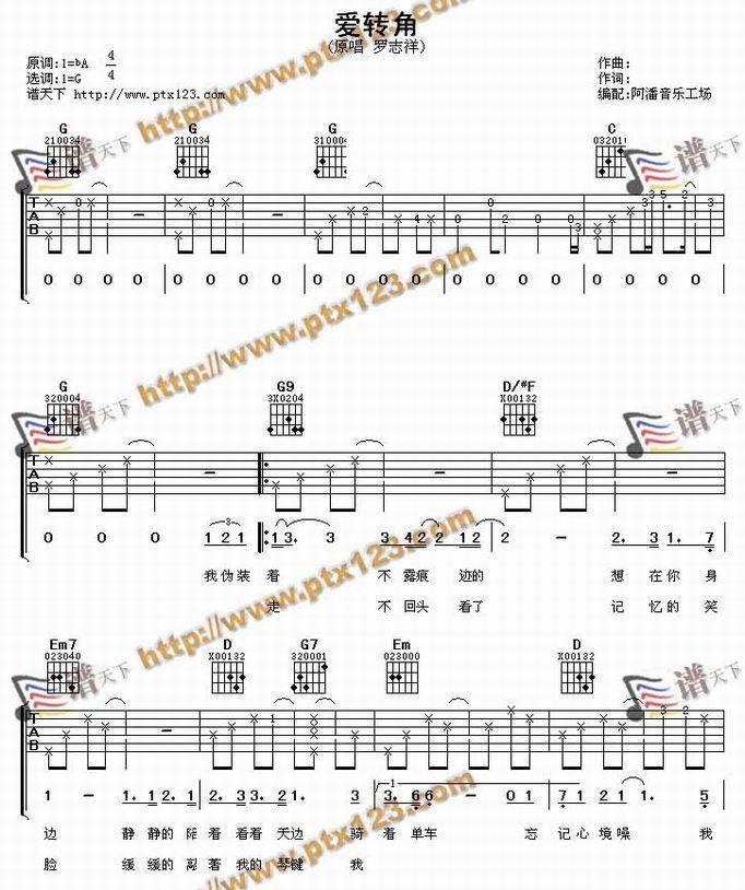 爱转角-罗志祥(吉他谱 吉他曲谱 吉他六线谱 吉他歌谱 吉它谱 影视吉他谱)