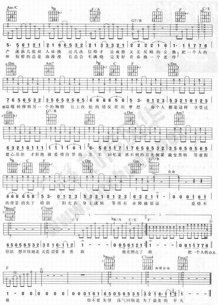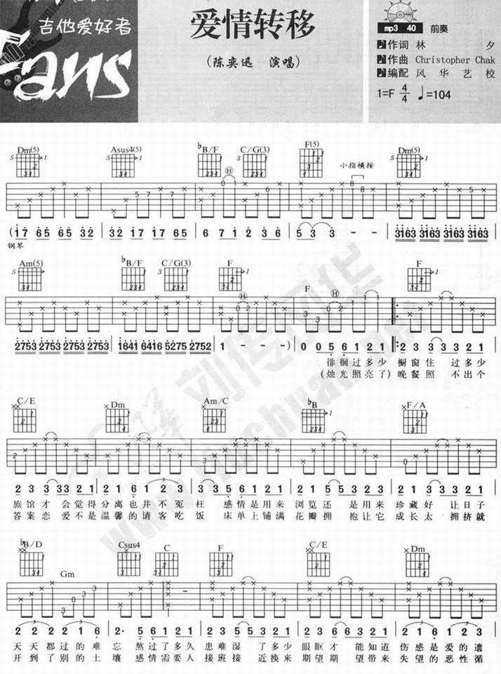 爱情转移-陈奕迅(吉他谱 吉他曲谱 吉他六线谱 吉他歌谱 吉它谱 影视吉他谱)