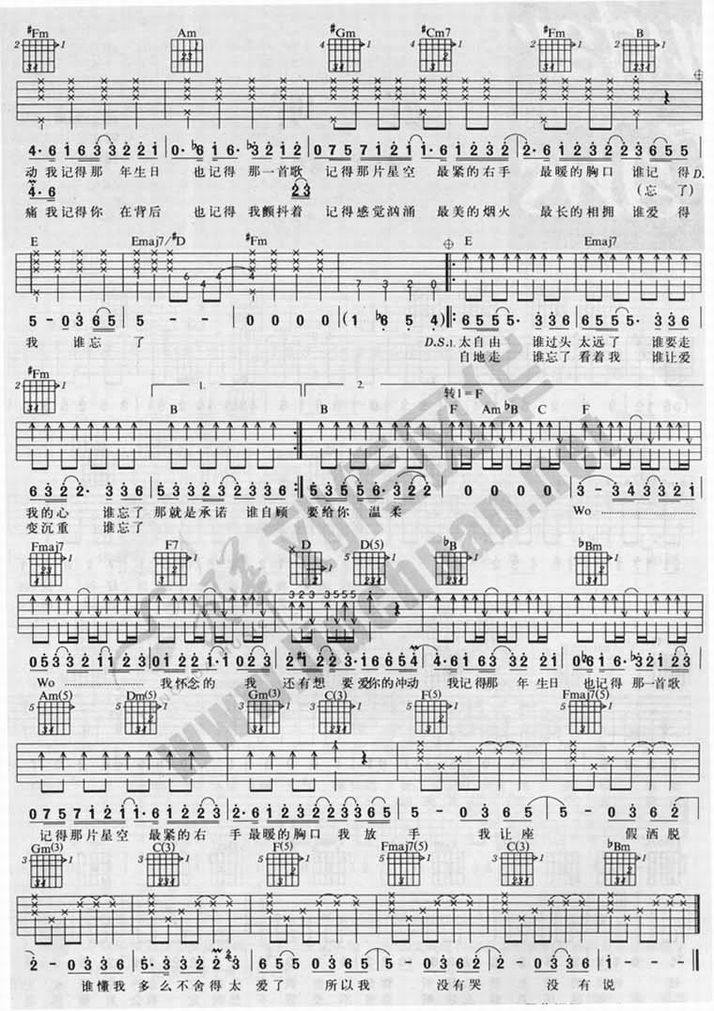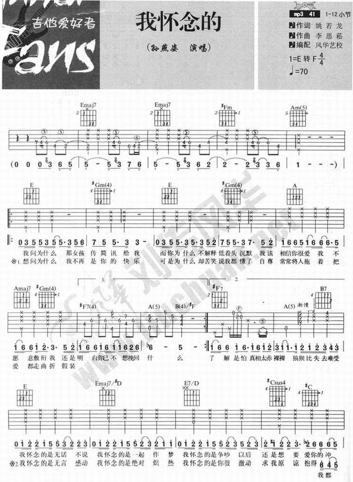 我怀念的-孙燕姿(吉他谱 吉他曲谱 吉他六线谱 吉他歌谱 吉它谱 影视吉他谱)