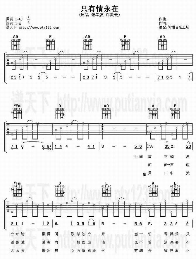 只有情永在-邝美云 张学友(吉他谱 吉他曲谱 吉他六线谱 吉他歌谱 吉它谱 影视吉他谱)