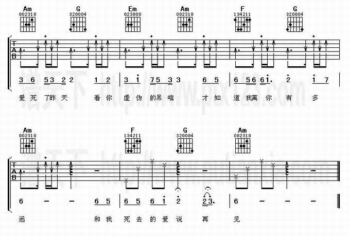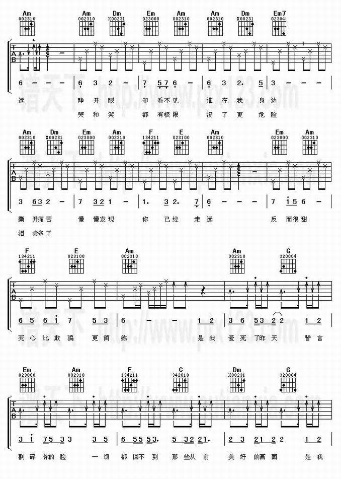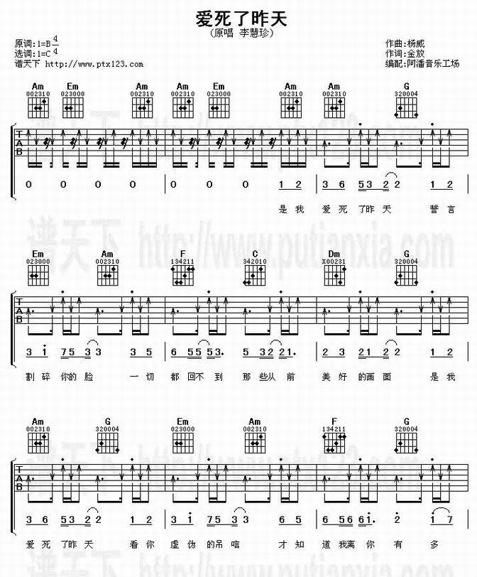 爱死了昨天-李慧珍(吉他谱 吉他曲谱 吉他六线谱 吉他歌谱 吉它谱 影视吉他谱)