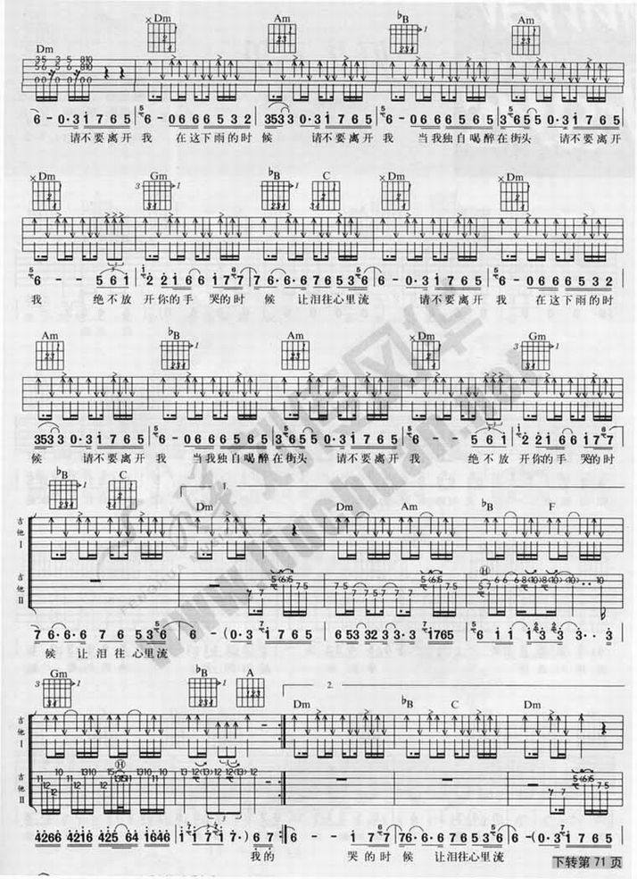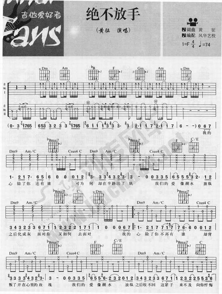 绝不放手-黄征(吉他谱 吉他曲谱 吉他六线谱 吉他歌谱 吉它谱 影视吉他谱)