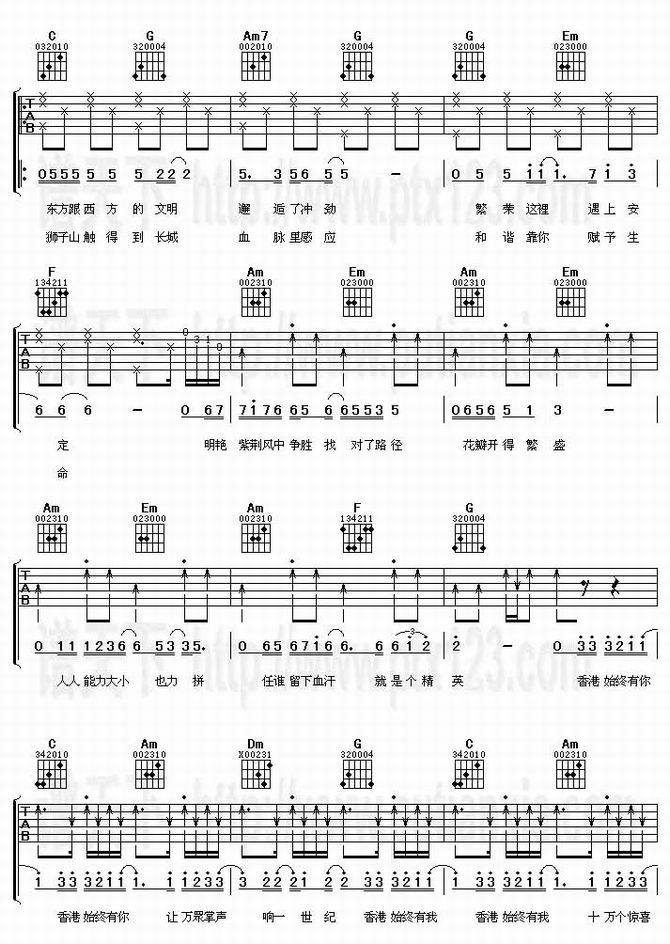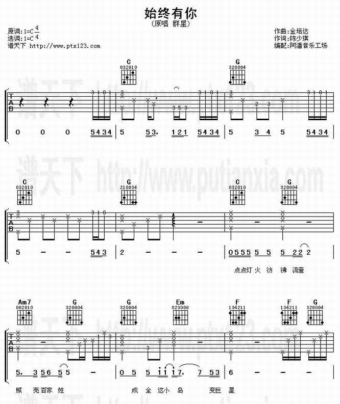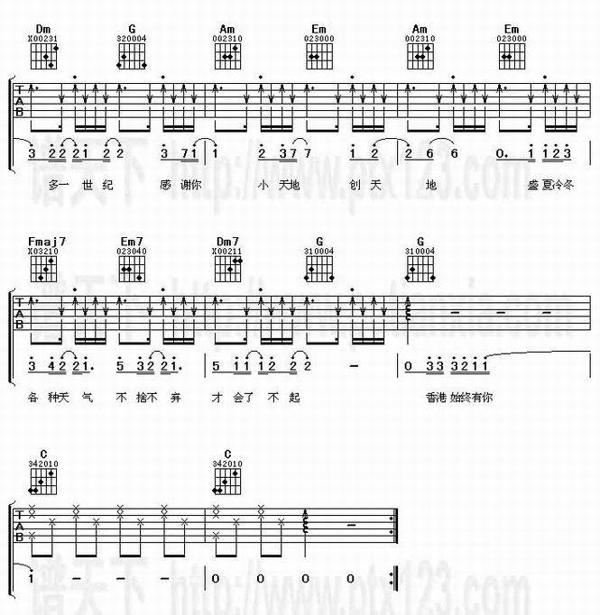 始终有你-群星_香港十年纪念(吉他谱 吉他曲谱 吉他六线谱 吉他歌谱 吉它谱 影视吉他谱)