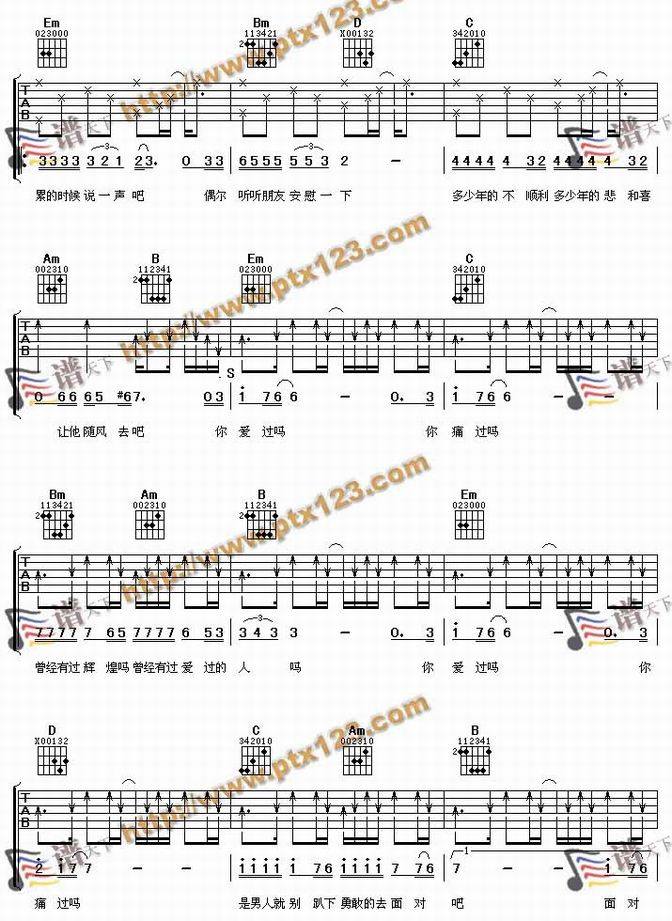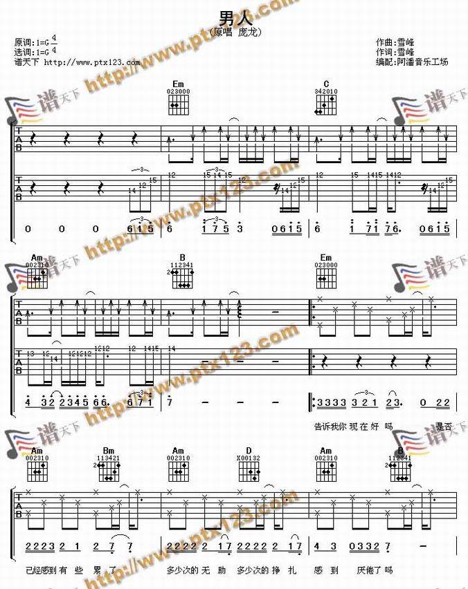 男人-庞龙(吉他谱 吉他曲谱 吉他六线谱 吉他歌谱 吉它谱 影视吉他谱)