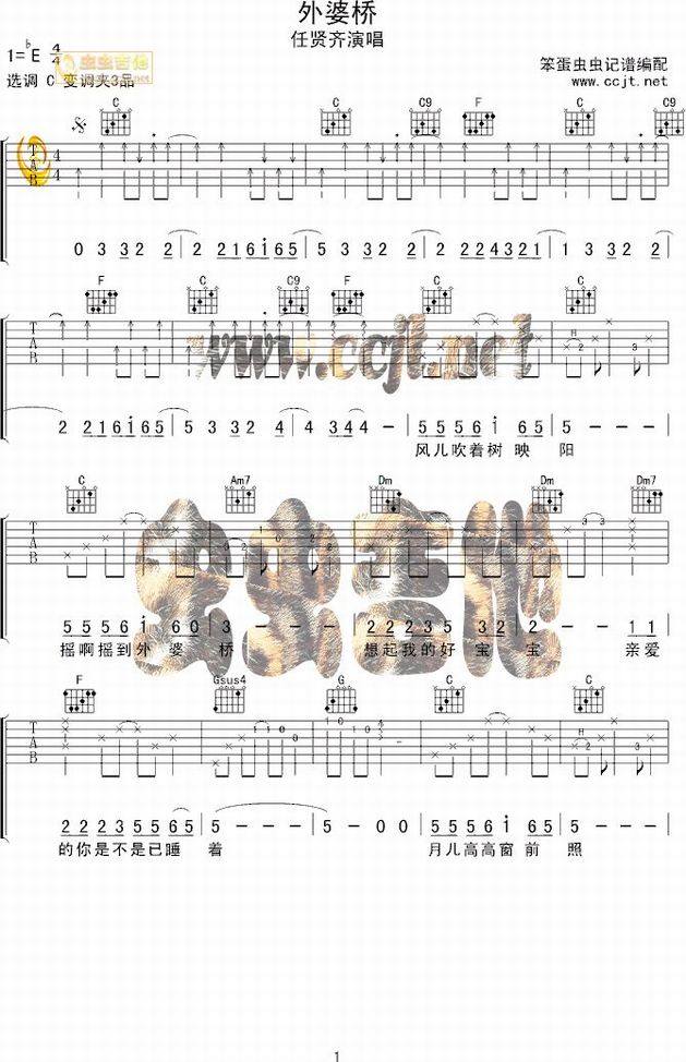 外婆桥-任贤齐(吉他谱 吉他曲谱 吉他六线谱 吉他歌谱 吉它谱 影视吉他谱)