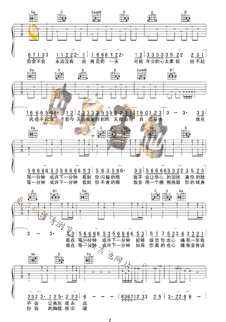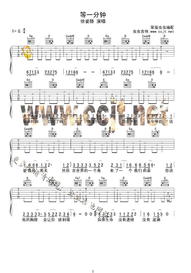等一分钟-徐誉滕(吉他谱 吉他曲谱 吉他六线谱 吉他歌谱 吉它谱 影视吉他谱)