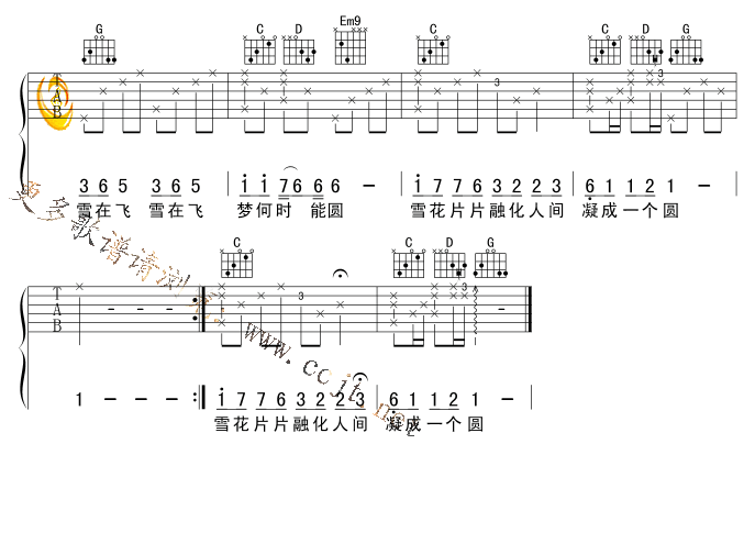 雪在飞-周传雄(吉他谱 吉他曲谱 吉他六线谱 吉他歌谱 吉它谱 影视吉他谱)
