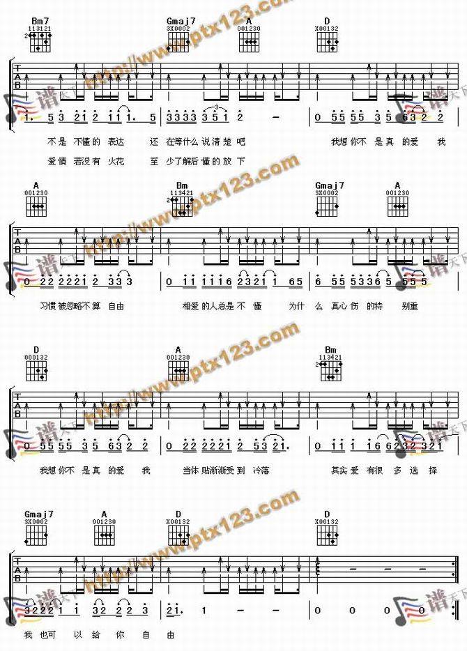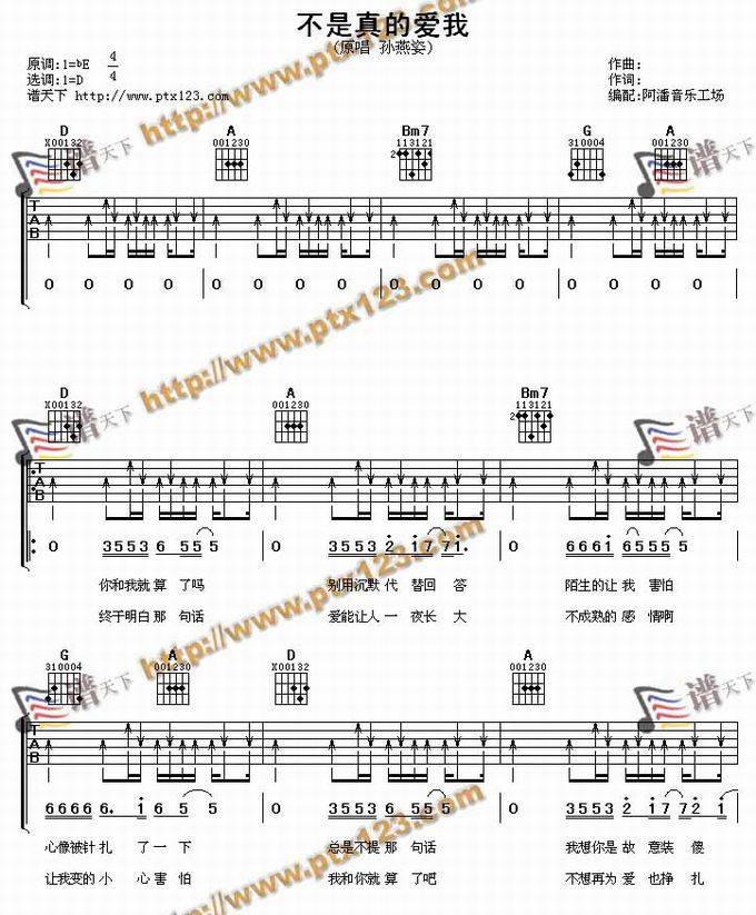 不是真的爱我-孙燕姿(吉他谱 吉他曲谱 吉他六线谱 吉他歌谱 吉它谱 影视吉他谱)
