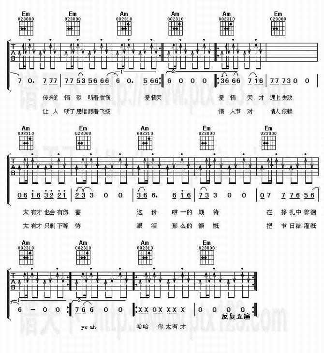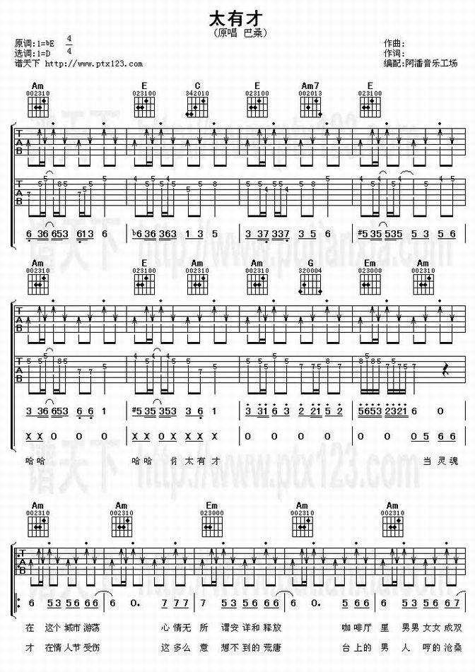 太有才-巴桑(吉他谱 吉他曲谱 吉他六线谱 吉他歌谱 吉它谱 影视吉他谱)