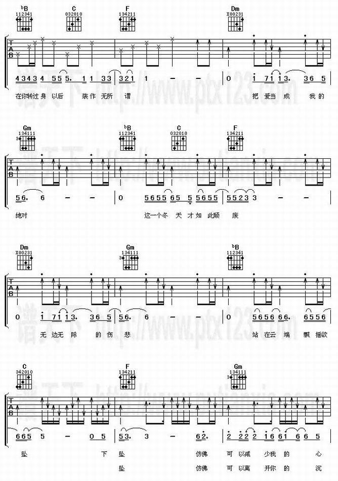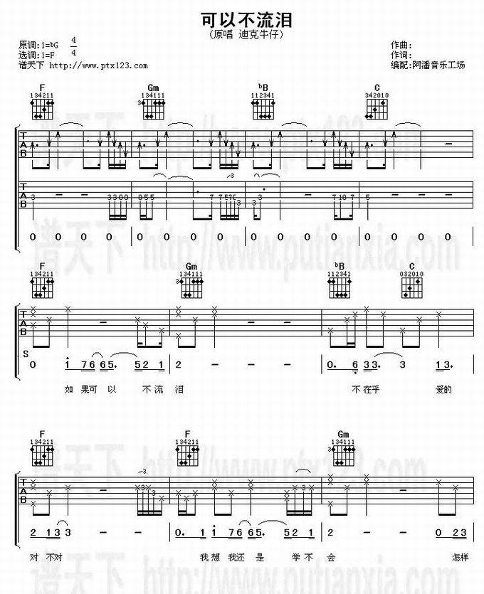 不可以流泪-迪克牛仔(吉他谱 吉他曲谱 吉他六线谱 吉他歌谱 吉它谱 影视吉他谱)