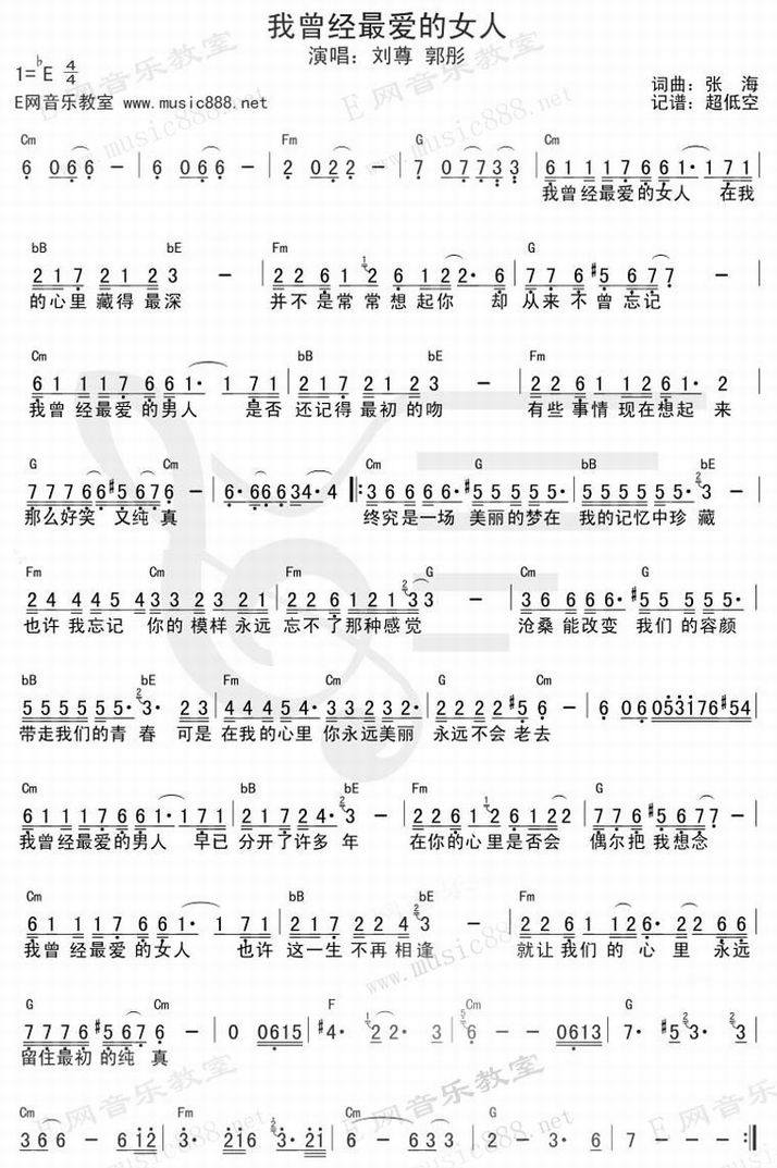 我曾经最爱的女人-刘尊/郭彤(简谱 歌谱 歌曲简谱 合唱简谱 影视简谱)