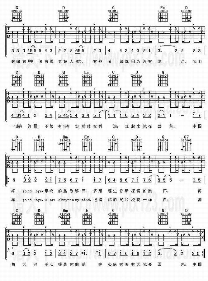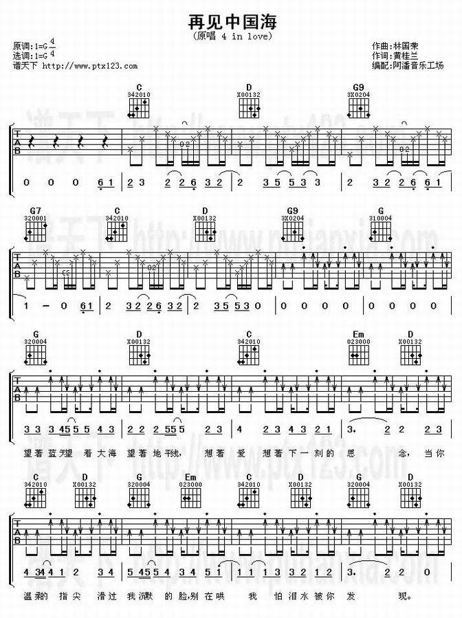 再见中国海-4 In Love(吉他谱 吉他曲谱 吉他六线谱 吉他歌谱 吉它谱 影视吉他谱)