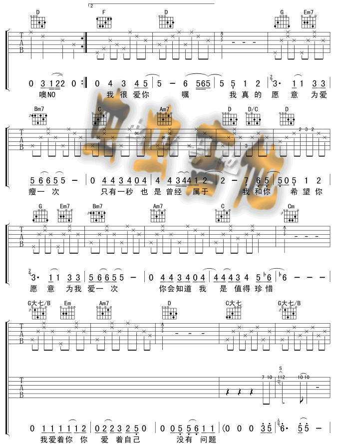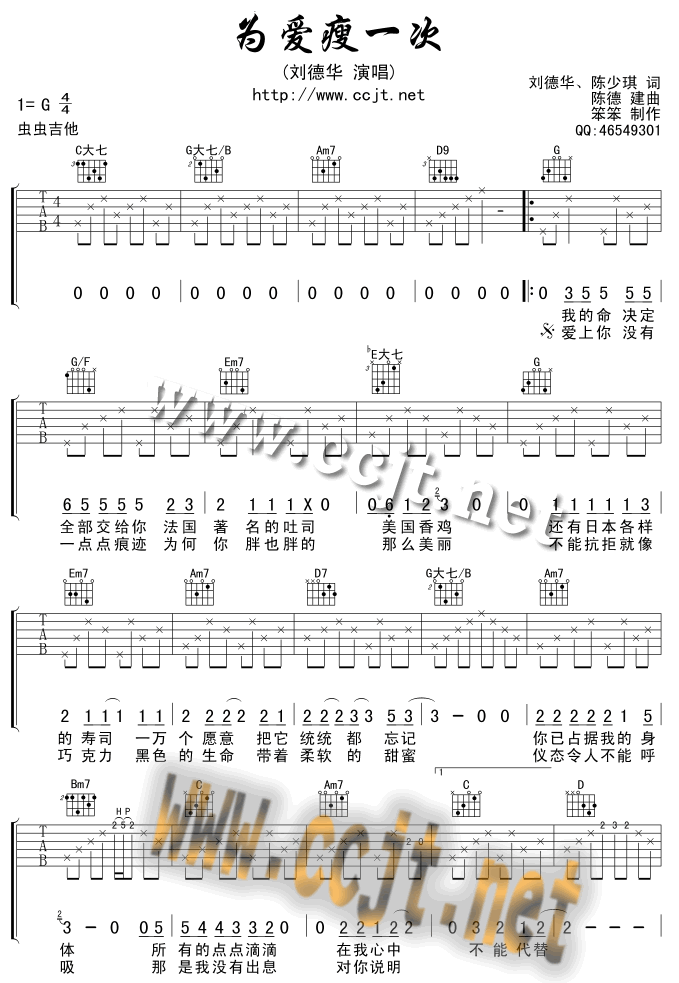 为爱瘦一次-刘德华(吉他谱 吉他曲谱 吉他六线谱 吉他歌谱 吉它谱 影视吉他谱)