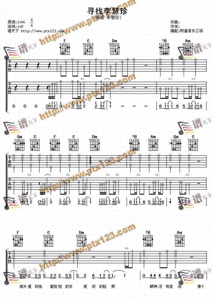 寻找李慧珍-李慧珍(吉他谱 吉他曲谱 吉他六线谱 吉他歌谱 吉它谱 影视吉他谱)