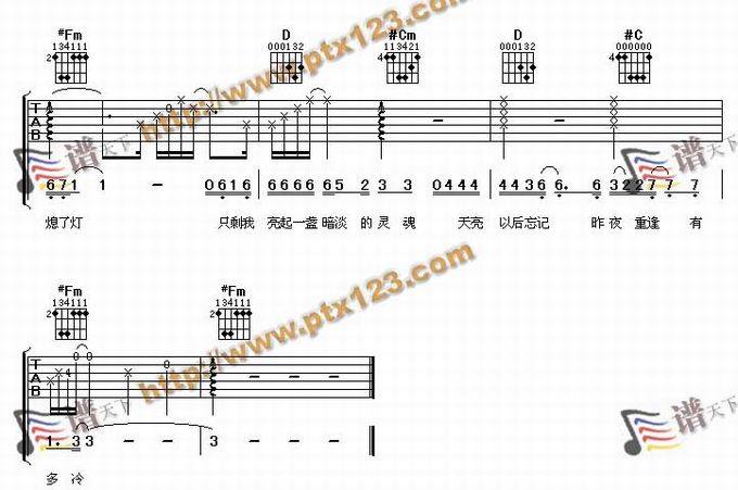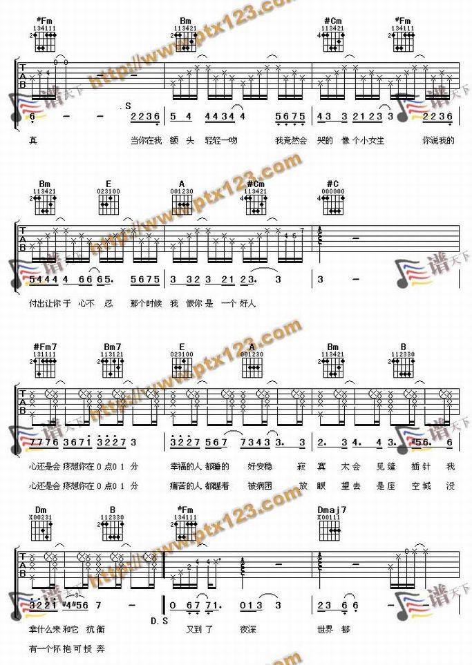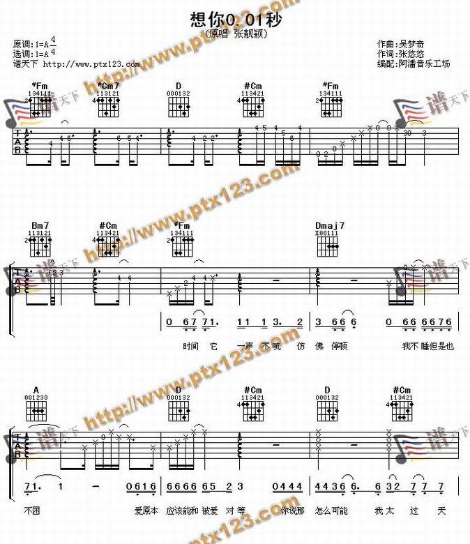 想你零点零一分-张靓颖(吉他谱 吉他曲谱 吉他六线谱 吉他歌谱 吉它谱 影视吉他谱)