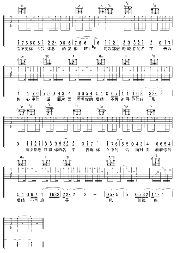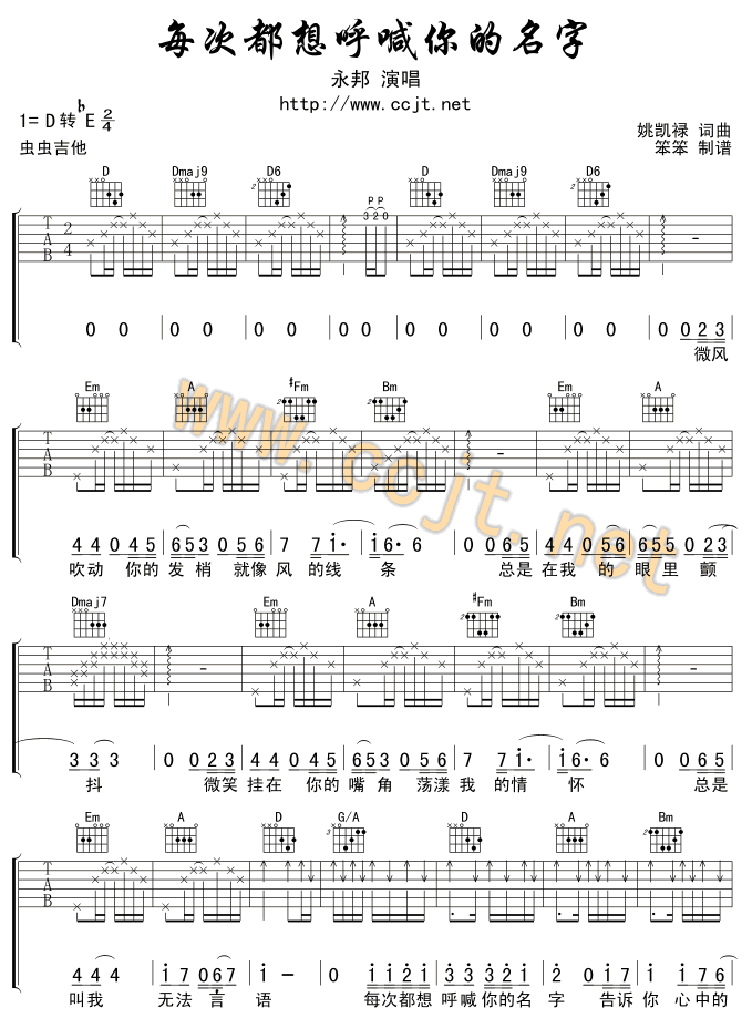 每次都想呼喊你的名字-永邦(吉他谱 吉他曲谱 吉他六线谱 吉他歌谱 吉它谱 影视吉他谱)