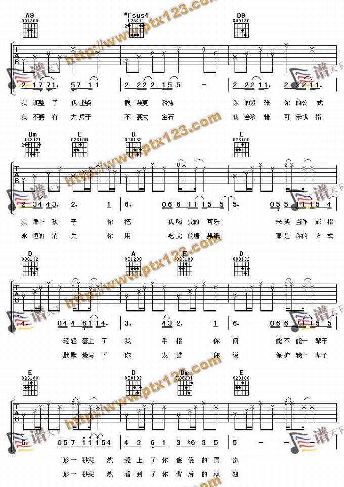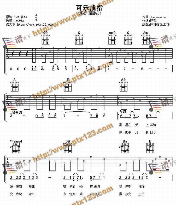 可乐戒指-梁静茹(吉他谱 吉他曲谱 吉他六线谱 吉他歌谱 吉它谱 影视吉他谱)