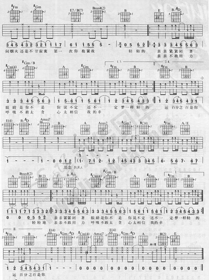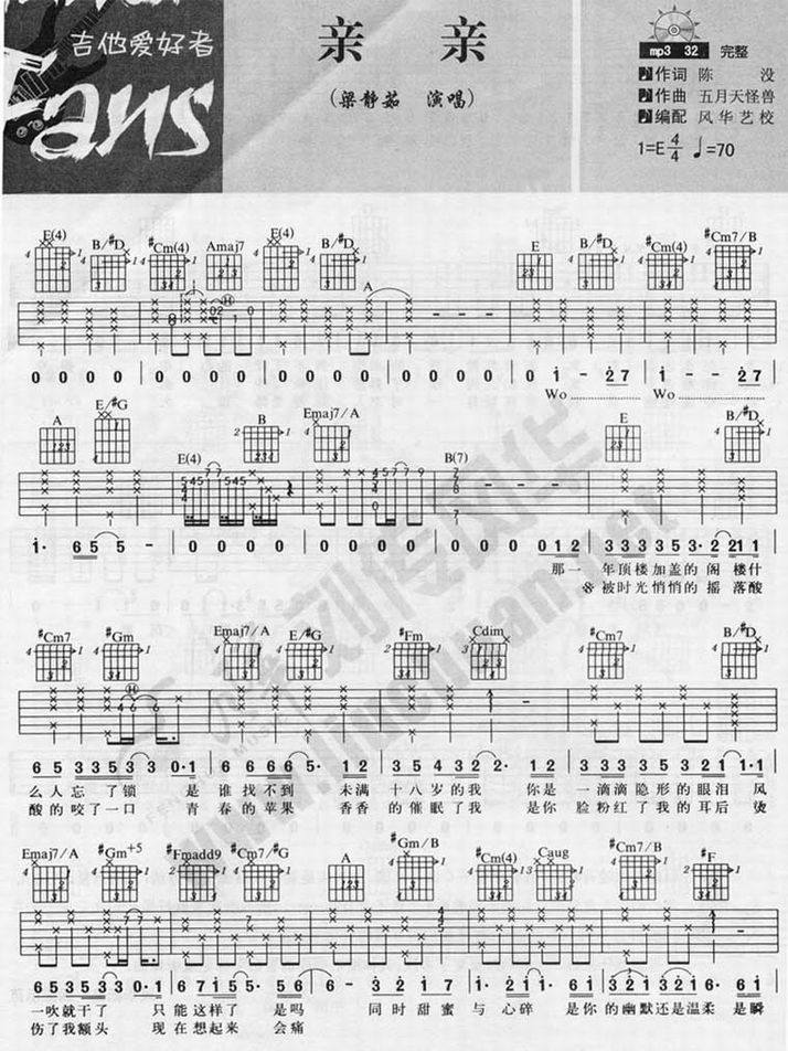 亲亲-梁静茹(吉他谱 吉他曲谱 吉他六线谱 吉他歌谱 吉它谱 影视吉他谱)