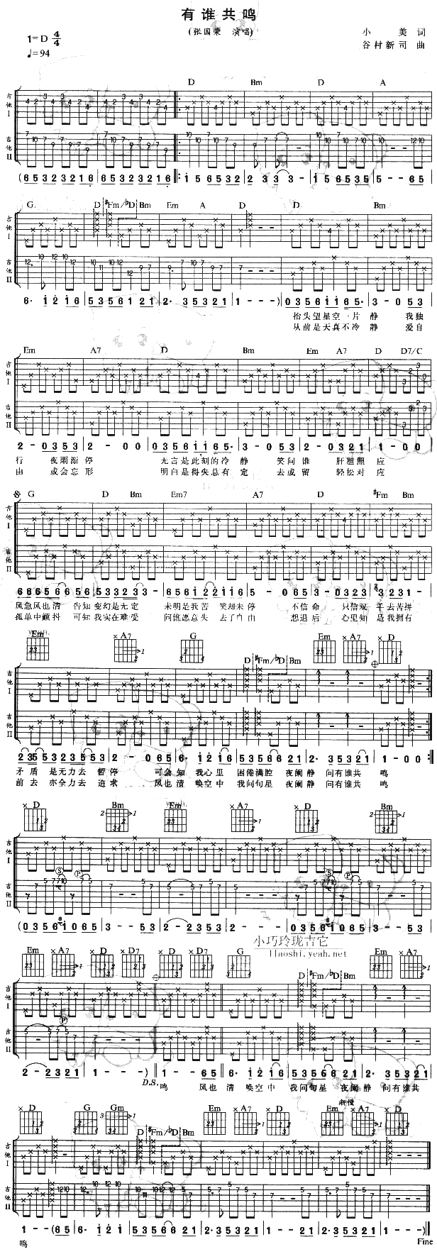 有谁共鸣-张国荣(吉他谱 吉他曲谱 吉他六线谱 吉他歌谱 吉它谱 影视吉他谱)