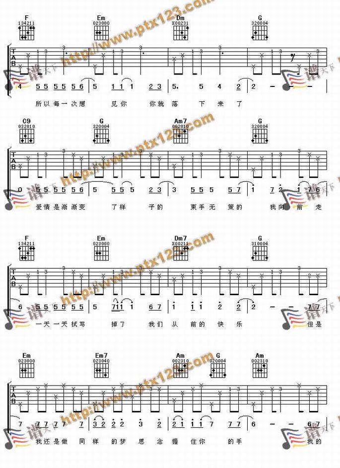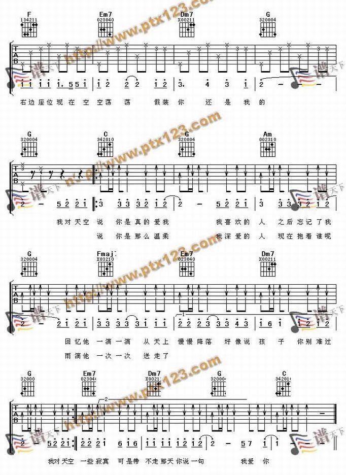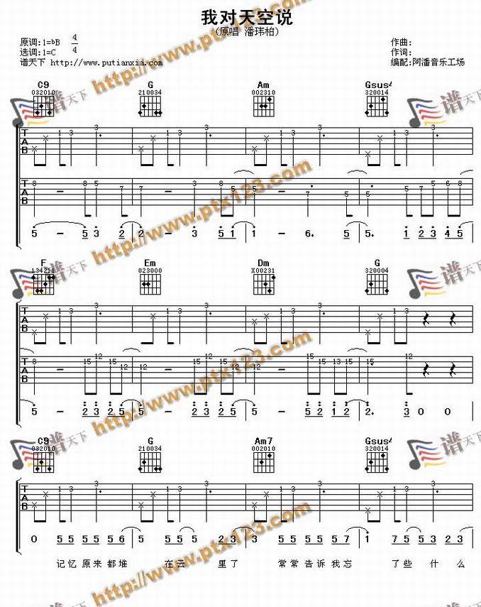我对天空说-潘玮柏(吉他谱 吉他曲谱 吉他六线谱 吉他歌谱 吉它谱 影视吉他谱)