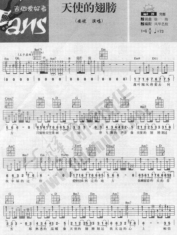 天使的翅膀-安琥(吉他谱 吉他曲谱 吉他六线谱 吉他歌谱 吉它谱 影视吉他谱)