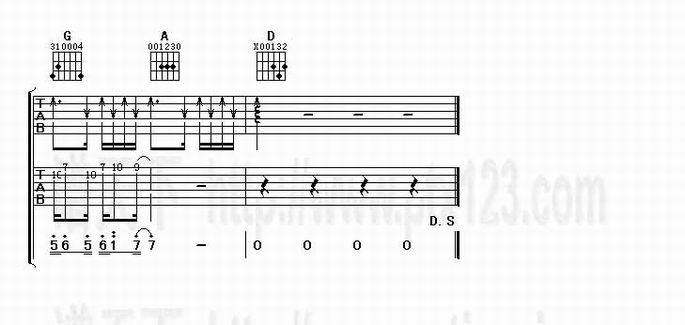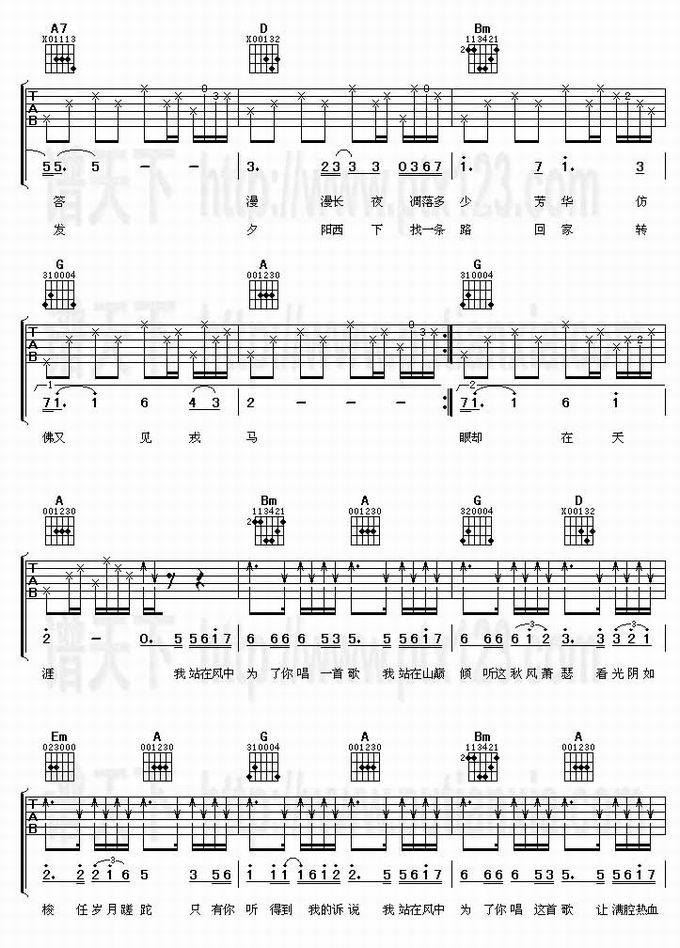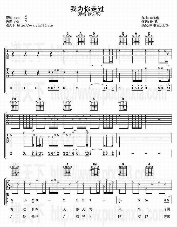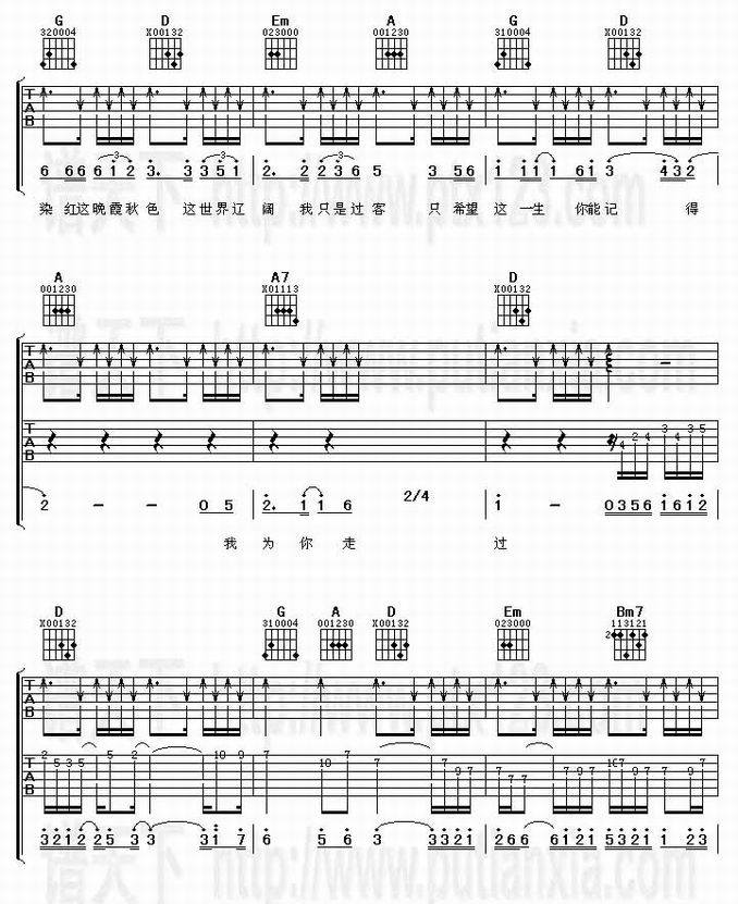 我为你走过-满文军(吉他谱 吉他曲谱 吉他六线谱 吉他歌谱 吉它谱 影视吉他谱)