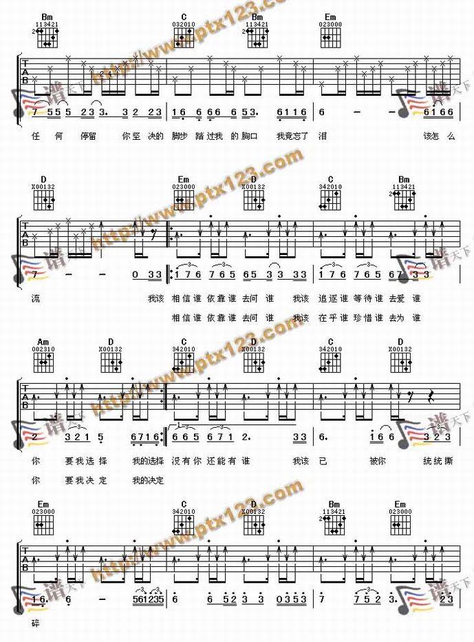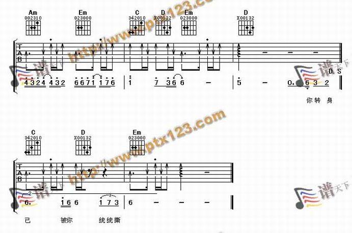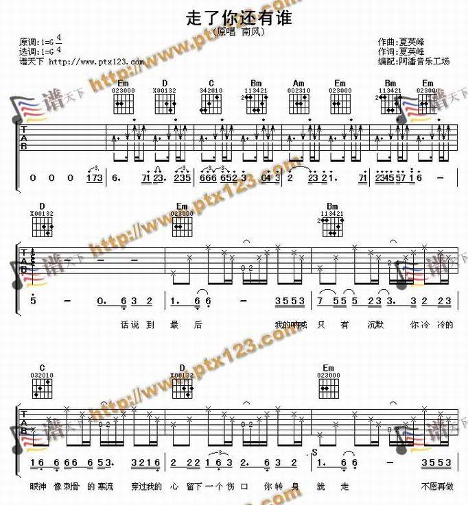 走了你还有谁-南风(吉他谱 吉他曲谱 吉他六线谱 吉他歌谱 吉它谱 影视吉他谱)
