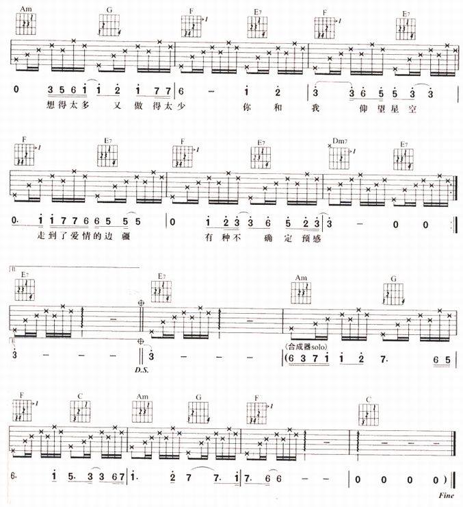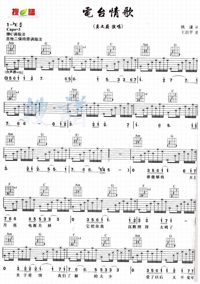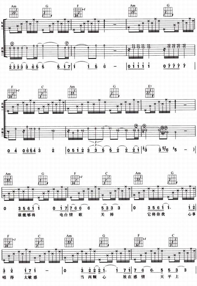 电台情歌-莫文蔚(吉他谱 吉他曲谱 吉他六线谱 吉他歌谱 吉它谱 影视吉他谱)