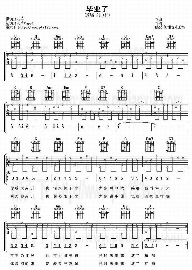 毕业了-刘力扩(吉他谱 吉他曲谱 吉他六线谱 吉他歌谱 吉它谱 影视吉他谱)