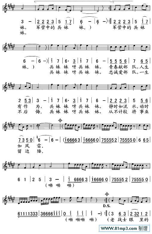 兵妹妹-刘一祯(简谱 歌谱 歌曲简谱 合唱简谱 影视简谱)