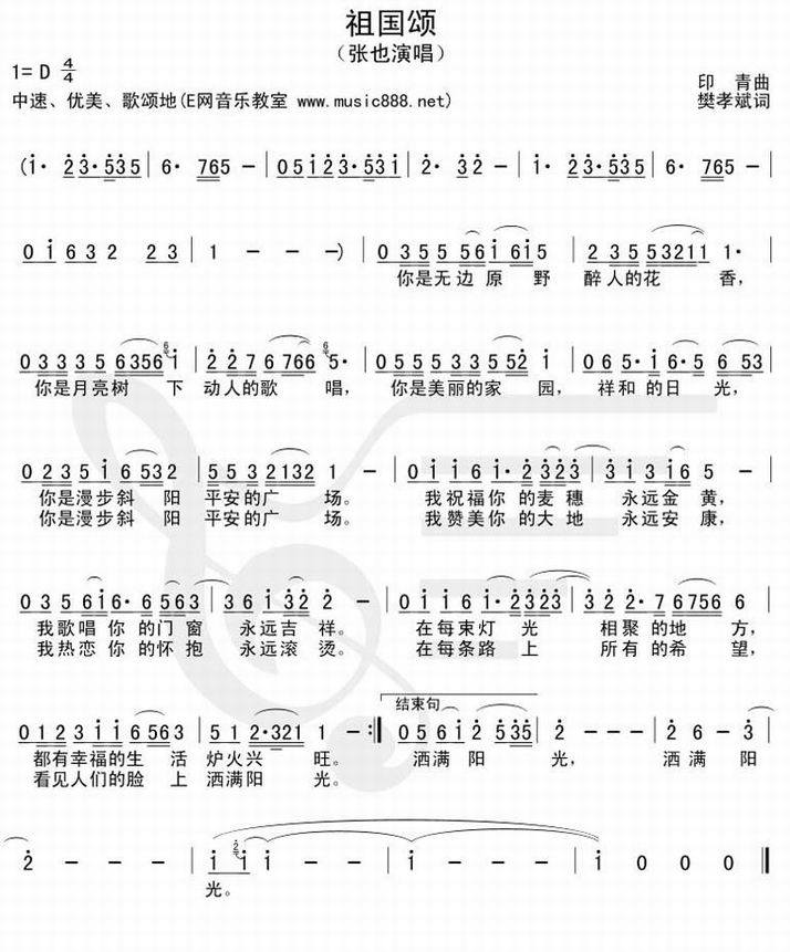 祖国颂-张也(简谱 歌谱 歌曲简谱 合唱简谱 影视简谱)