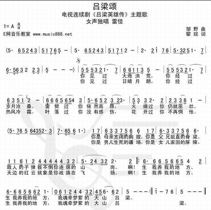 吕梁颂-雷佳_吕梁英雄传(简谱 歌谱 歌曲简谱 合唱简谱 影视简谱)