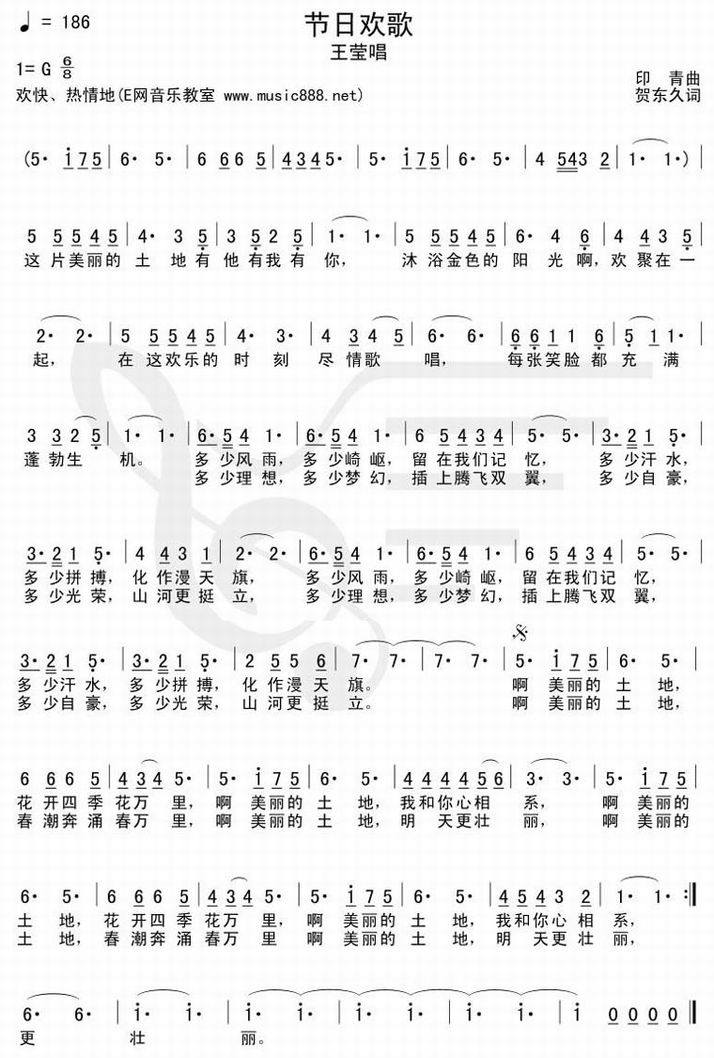节日欢歌-王莹(简谱 歌谱 歌曲简谱 合唱简谱 影视简谱)