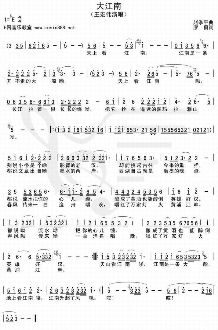 大江南-王宏伟(简谱 歌谱 歌曲简谱 合唱简谱 影视简谱)